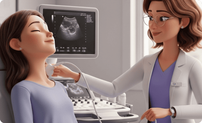 УЗИ щитовидной железы — безопасный и информативный метод исследования, позволяющий оценить размеры, структуру и состояние органа. В нашей клинике обследование выполняется как взрослым, так и детям.