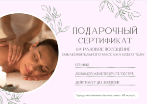 • Сертификат на массаж;