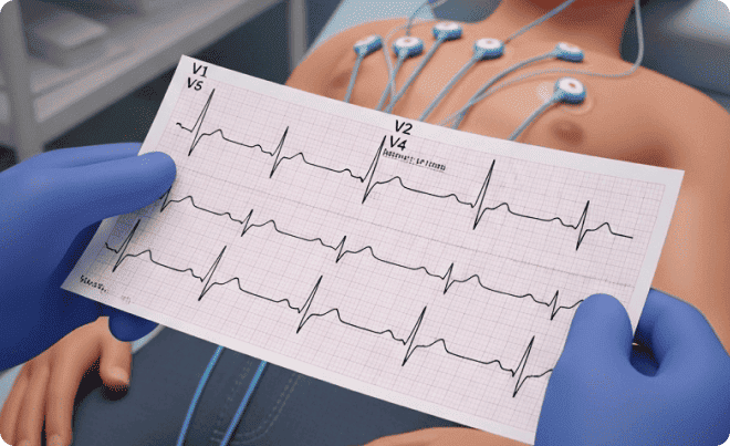 Электрокардиография (ЭКГ) — это быстрый и безопасный метод исследования работы сердца. ЭКГ фиксирует электрическую активность миокарда и помогает вовремя выявить аритмии, ишемию, последствия перенесённых инфарктов и другие нарушения.