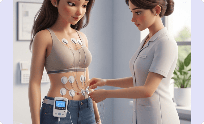 - Врач подготовит устройство: задаёт программу измерений (интервалы) и объяснит технику.